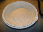 Impastarla sempre con la paletta fino ad avere un impasto molto morbido, sempre con la paletta formare una specie di palla sul fondo della ciotola da lievitazione, chiudere col coperchio e mettere in forno con la luce accesa per 90 minuti.